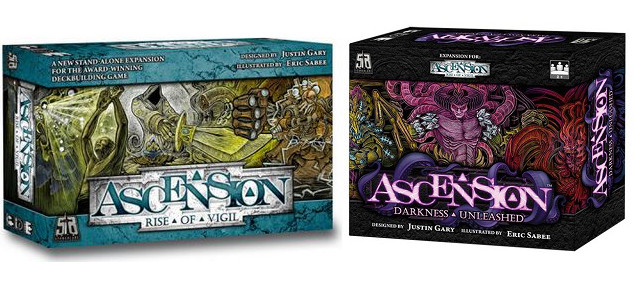 Personnellement, je crois que c’est ma boite préférée car j’aime beaucoup le principe du Multi-Unite qui pousse les joueurs à choisir des cartes de mêmes factions pour obtenir des effets toujours plus puissants (ce qui en plus renforce un peu la thématique, les héros d’une même faction s’entraidant). Toutefois attention, Ascension reste un jeu d’adaptation permanente en fonction des cartes apparaissant sur la ligne centrale et si jamais plus aucune carte des factions recherchées n’apparaît (hasard du tirage), il faut savoir choisir une nouvelle orientation de son deck.