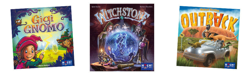 Huch propose bien sûr du jeu familial, ainsi rejoignant le précédent Coralia, Atalia s’occupera désormais aussi de Seikatsu, Clonk, Outback (un M. Kiesling sorti il y a deux ans), et enfin, un futur titre de Christian Fiore & Knut Happel nommé Fiesta Mexicana qui mélangera une mécanique d’enchères avec de la déduction.