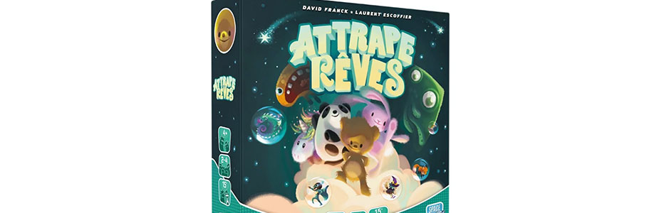 Cet Attrape-rêves de David Franck et Laurent Escoffier nous propose de nous aventurer dans le monde des songes, mais attention, car des cauchemars rôdent. Quoi de mieux qu’un doudou pour s’en protéger ?! En faisant disparaître les cauchemars, vous récupérerez des rêves et quand vous avez 12 rêves, vous avez gagné.