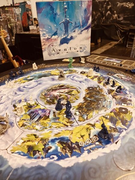 C’est seulement le second projet de Jamie Jolly en 5 ans (l’auteur de Oathsworn c’est bien vous suivez), mais c’est du lourd. « Un jeu arthurien dans lequel les légendes explorent l’île brumeuse d’Avalon… » voici l’entame de cet Avalon The Riven Veil, un jeu d’exploration et de contrôle de zones basé sur l’époque arthurienne pour 2 à 4 joueurs, où vous dirigez des factions asymétriques à travers le voile brumeux pour découvrir l’île mystique d’Avalon. On pense un peu à Blood Rage, il y a même un thread sur BGG pour le comparer à ce titre d’Eric Lang (2015) car nous sommes vraiment dans du contrôle de zone, comme nous allons le voir.