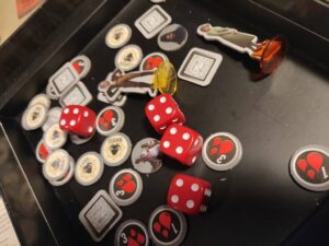 Comme dans tout Horreur à Arkham qui se respecte, vous allez devoir faire des tests de compétence via des jets de dés en fonction de vos compétences. Dégâts physiques, dégâts mentaux, tout y est. Au fur et à mesure de l’aventure, vous allez trouver des indices, résoudre des énigmes, trouver des armes, des alliés.