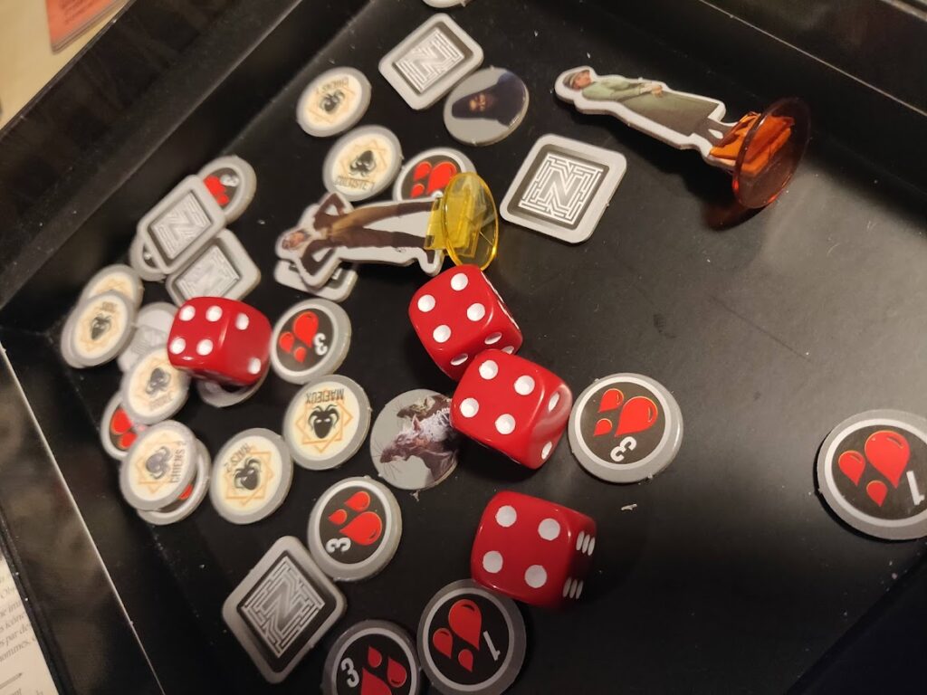 Comme dans tout Horreur à Arkham qui se respecte, vous allez devoir faire des tests de compétence via des jets de dés en fonction de vos compétences. Dégâts physiques, dégâts mentaux, tout y est. Au fur et à mesure de l’aventure, vous allez trouver des indices, résoudre des énigmes, trouver des armes, des alliés.