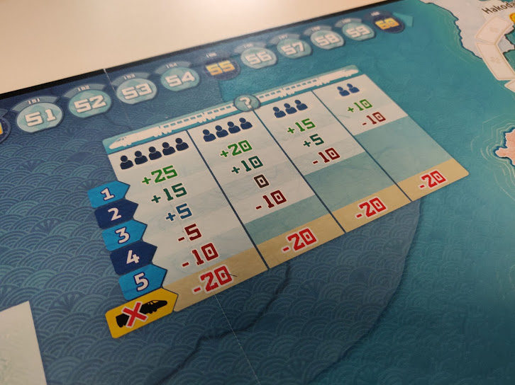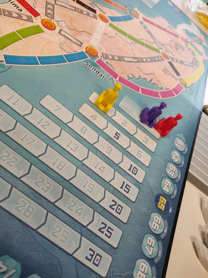 Ma première impression sur le plateau « Japon » fut que la partie allait être plutôt courte car nous ne disposons que de 20 wagons chacun, au lieu de 45 dans le jeu de base.