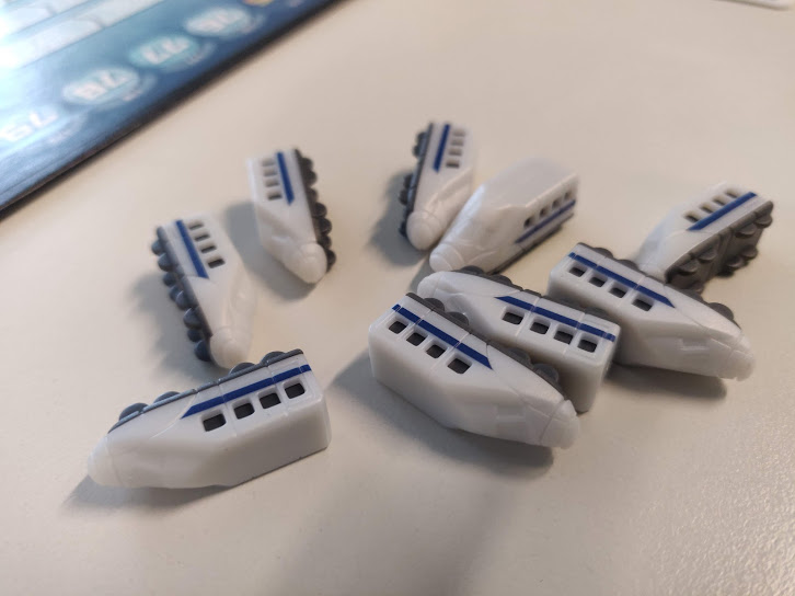 Quel plaisir cela serait d’avoir des pions 新幹線 sur le plateau. Heureux voyageurs que vous êtes ! Cette extension propose de nouvelles jolies petites locomotives à grande vitesse.