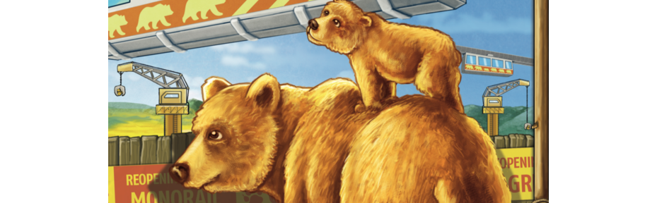 Bärenpark : The Bad News Bears traduit Les grizzlys arrivent ! élargit le concept du jeu pour l’étendre sur cinq plateaux de parc, histoire de pouvoir accueillir dignement l’élément central de l’extension : un monorail.