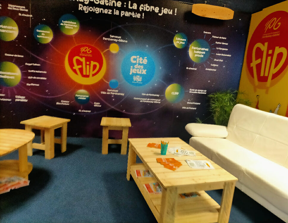 Nouveauté d’importance pour les pros : l’ouverture de l’espace « VLIP » (Very Ludique Important Person), à l’emplacement du futur « Palais des jeux ». La Cité des jeux, projet de la ville de Parthenay, qui a acheté l’ancien bâtiment France Télécoms, 1500 m2 qui seront prochainement transformés en tiers-lieu ludique : Ludothèque, expositions, formations, accueil d’associations ludiques, et un laboratoire ludique (création, expérimentation, espace de jeux), tout cela donnant sur l’emblématique Place du Drapeau. Lors de cette édition, les professionnels pouvaient profiter du calme et de la fraîcheur des lieux pour des rendez-vous et prendre connaissance du projet.