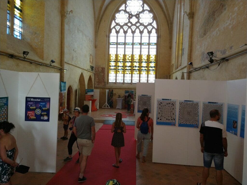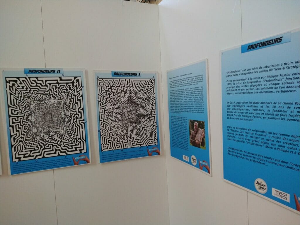 La Chapelle des Arts Ludiques accueillait comme de coutume plusieurs expositions. Une série de grilles de « Ricochet » était à résoudre sur place. Profondeurs mettait à l’honneur en grands formats la série de labyrinthes de Philippe Fassier parus dans Jeux & Stratégie de 1986 à 1989. Cartzzle et Cartaventura avaient également droit à une mise en avant.