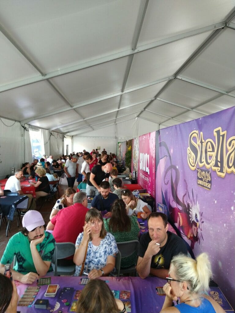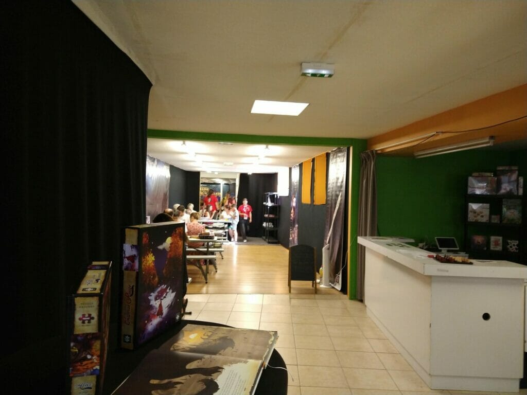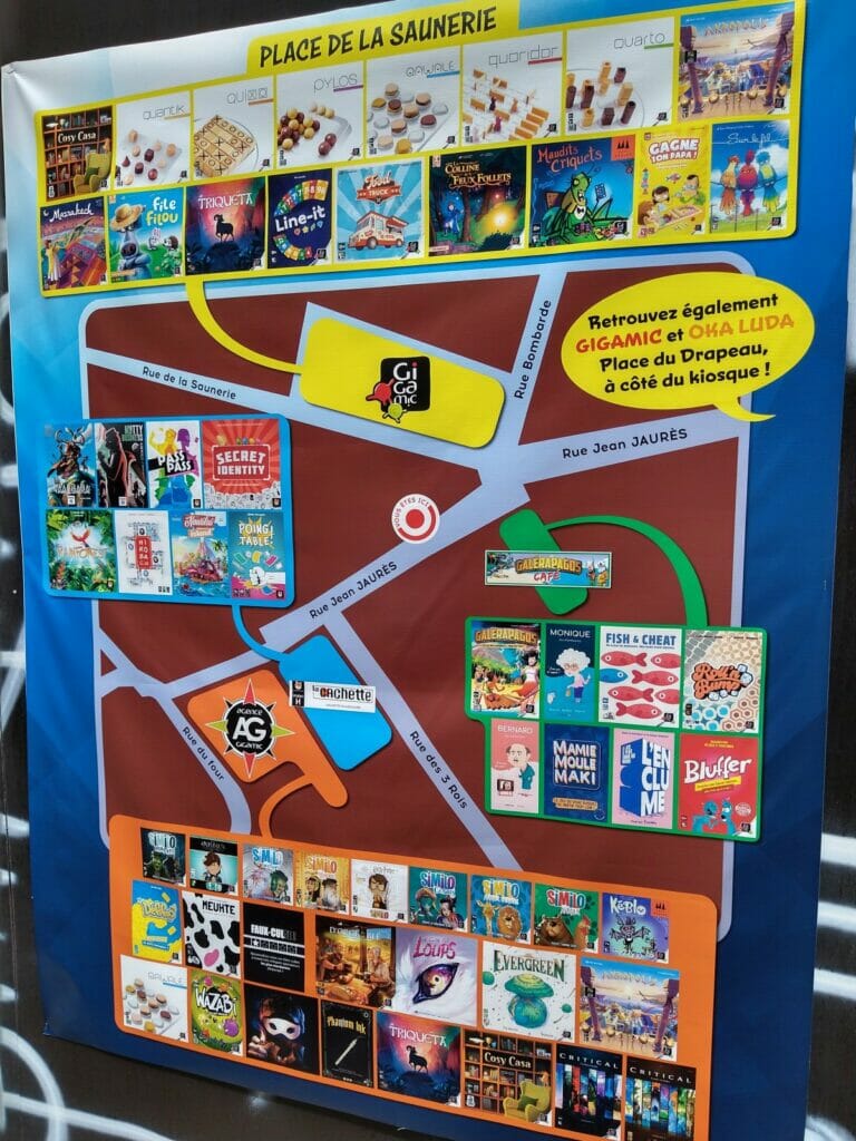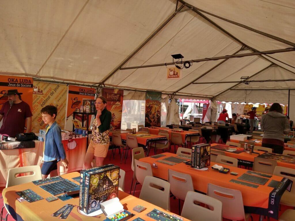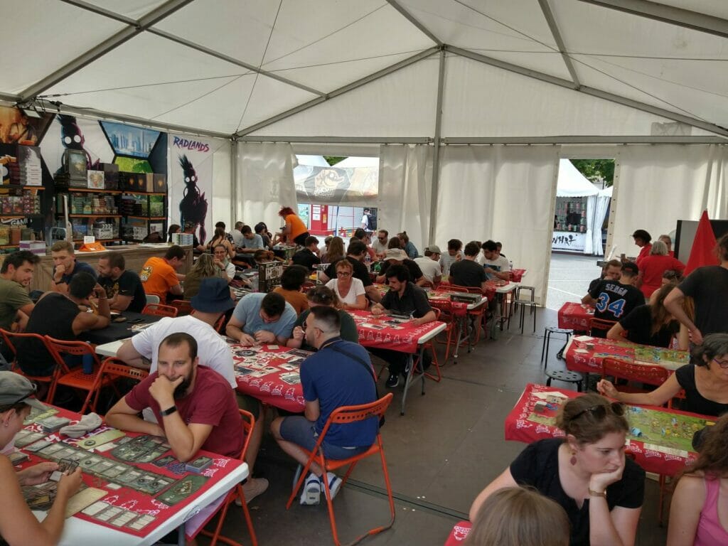 En plus des traditionnels Escale Bombyx, plusieurs lieux Gigamic, Captain Meeple, un nouveau café éphémère, celui d’Akham Society, nouvel éditeur qui présentait ses trois premiers jeux. À noter l’apparition des jeux d’Histoire cette année.