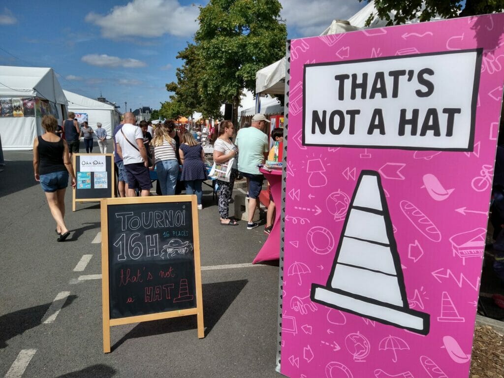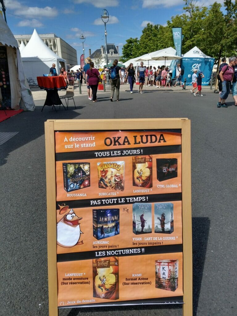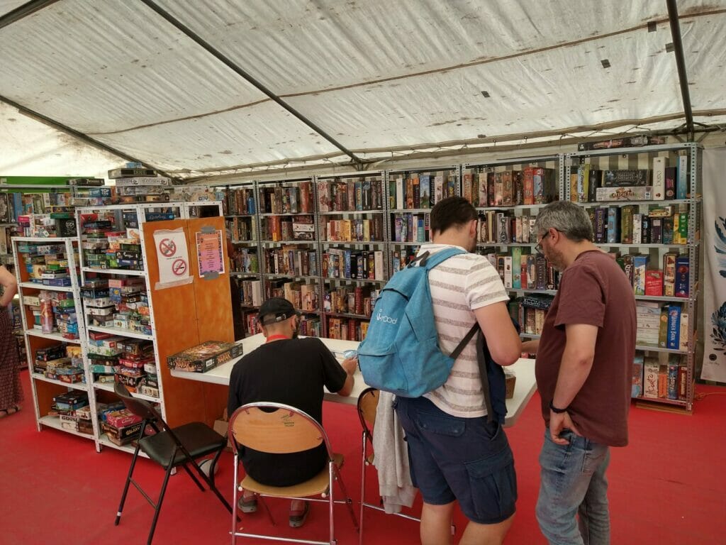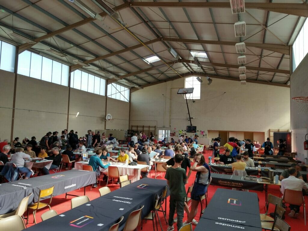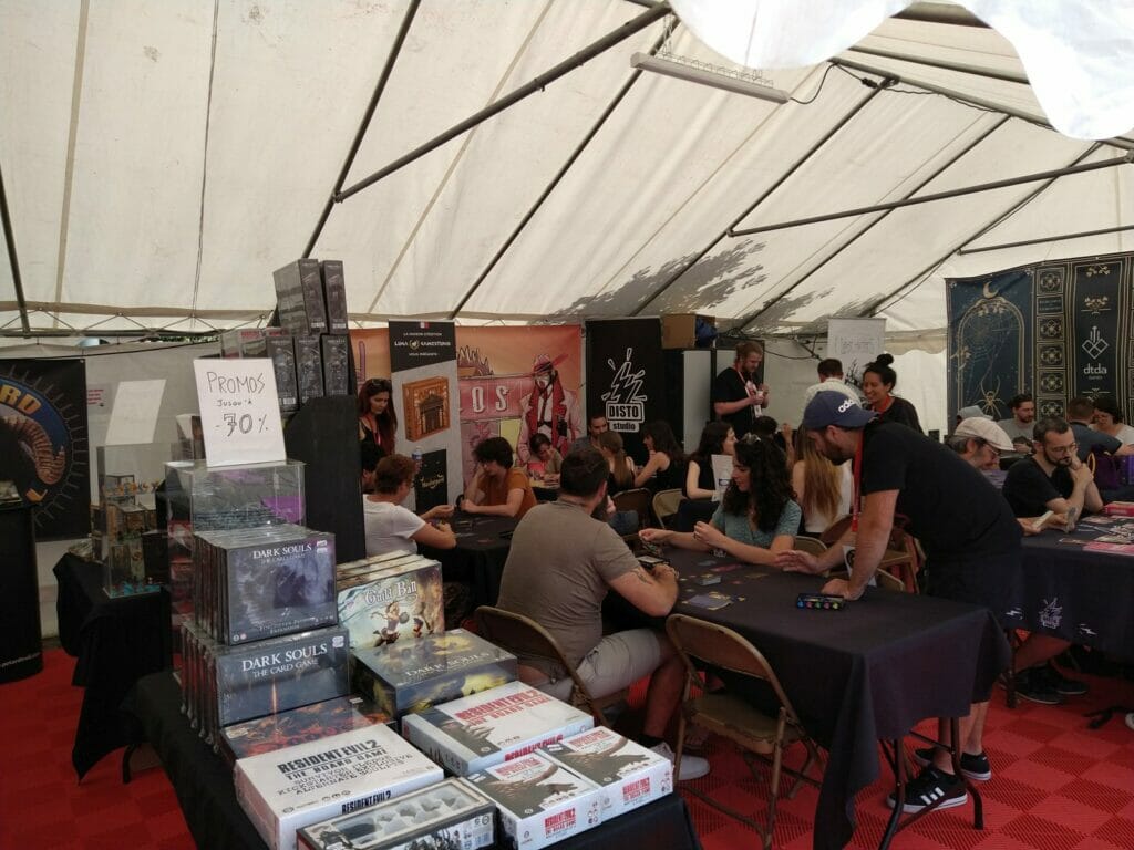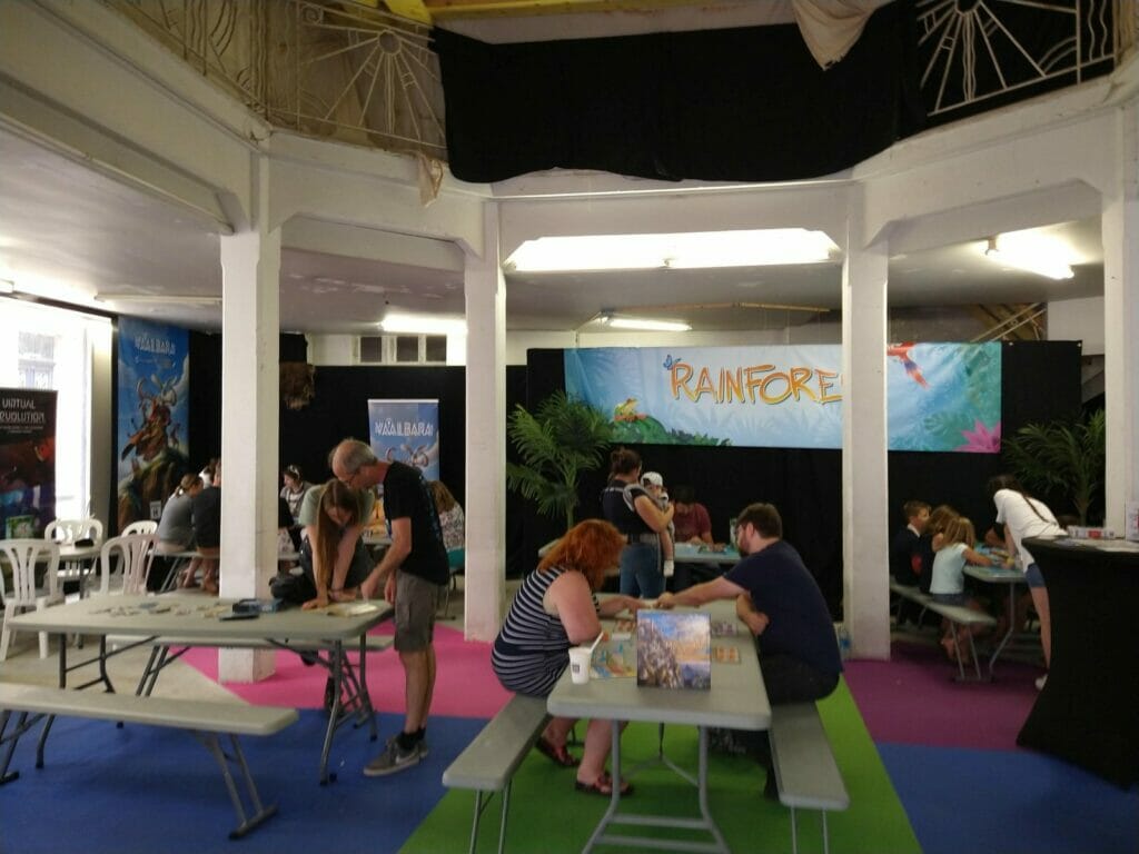 En plus des traditionnels Escale Bombyx, plusieurs lieux Gigamic, Captain Meeple, un nouveau café éphémère, celui d’Akham Society, nouvel éditeur qui présentait ses trois premiers jeux. À noter l’apparition des jeux d’Histoire cette année.