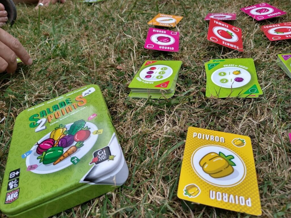 Happy Bee (2023) : Heureuse surprise malgré une apparence peu engageante avec une DA minimaliste. C’est un jeu de majorité dans lequel il faudra miser face cachée devant soi pour remporter des cartes de l’offre, tout en évitant une égalité avec ses adversaires. Exercice cérébral intéressant. On se prend vite au jeu, même si on peut facilement perdre le fil lorsqu’il faut passer une partie de ses cartes au voisin. Feeling positif de mon côté. | Incognito (2021) : Cacher un objet dans une scène (la jungle, une mine…), quelle belle idée. Le gros travail effectué pour fournir des exemples d’éléments de décor est parfait, car il faut charger un peu son paysage pour noyer le poisson. La phase de résolution « à la Dixit » se montre malheureusement décevante. Et le principal écueil du genre n’est pas gommé : il est nécessaire de savoir dessiner un peu correctement. [Small is beautiful] | |