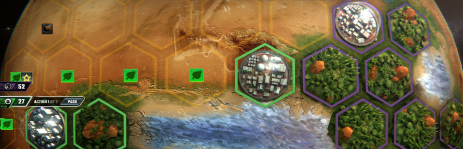 L’argent est donc un élément essentiel dans ce jeu. Mais bien d’autres critères devront être suivis de près comme le taux d’oxygène, la chaleur ainsi que les océans que vous devrez créer à la surface. Tous ces paramètres vous feront gagner de précieux niveaux de terraformation, vous permettant à la fois d’accumuler toujours plus de crédits et de remporter la fin de partie.