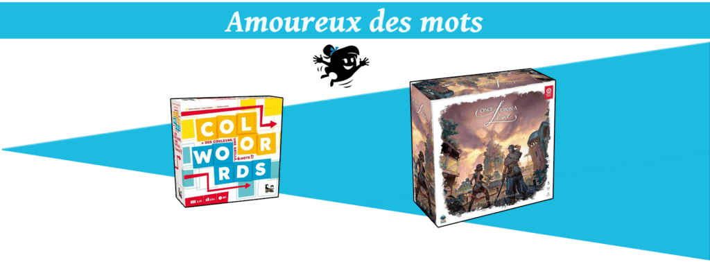 Vous voulez initier votre entourage aux jeux de société, mais ils ne connaissent que le Scrabble ? Voici Color Words. Ici, chacun a sa grille colorée, sur laquelle on écrira 6 mots au cours de 6 manches. Trois lettres seulement sont proposées (ouste, les W et Z pénibles du Scrabble) qu’on essayera de placer dans notre mot. Si en plus on les inscrit sur la case de la bonne couleur, on marque 2 points au lieu de 1. La contrainte (thématique ou de longueur de mot) rapporte aussi si elle est respectée. Oui, car la grande beauté de Color Words est la liberté : si on ne place pas toutes les lettres ou la contrainte, ce n’est pas grave.