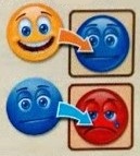 À partir de tout nouveau pion posé, on trace une ligne imaginaire dans les 8 directions possibles (horizontalement, verticalement, et en diagonale) jusqu’à rencontrer un élément jaune (smiley ou pion précédemment posé). Si une telle ligne comporte uniquement des smileys bleus ou rouges et aucun espace vide, alors ces smileys évoluent de la manière suivante : bleu devient heureux en jaune, et rouge sèche ses larmes pour passer au bleu.