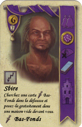 Ces cartes additionnelles sont mélangées aux personnages mais reconnaissables à leur dos spécifique. Elles n’ont pas de pouvoir d’activation, mais leur ratio de 1PV pour 2 Florins est légèrement meilleur qu’un personnage classique (1 pour 3). De plus, elles peuvent être placées dans une maison vide comme dans une maison hébergeant déjà un personnage, en tant que compagnon de leur maître, ce qui les rend assez peu contraignantes à caser.