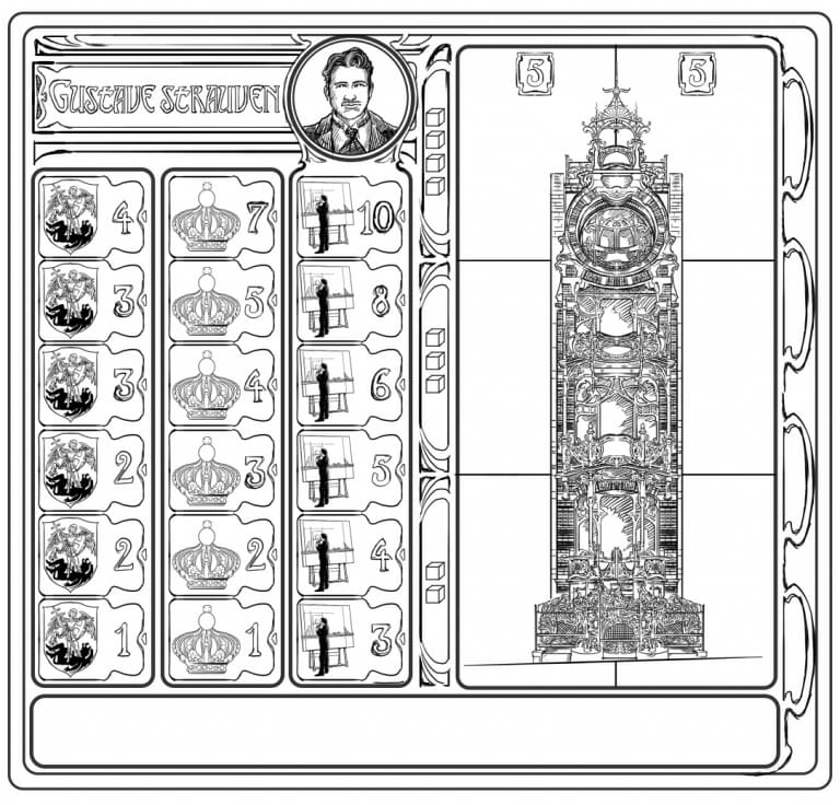 La grande particularité du jeu étant le plateau d’Art Nouveau sur lequel on va placer nos ouvriers pour leurs actions, mais aussi dans le but de gagner des majorités en ligne et en colonne, le jeu offrant une réflexion multi niveau