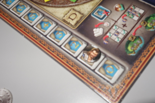 Et enfin, le troisième élément est une piste de points de privilège. À ne pas confondre avec la piste de score, les points de privilège vont nous permettre d’effectuer des tas de bonus qui pourront nous sortir de situations complexes. « Bon sang, il me manque une pièce ! »… Un point de prestige, et hop ! Vous êtes sauvé pour faire votre combo…