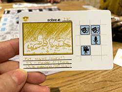 Ces cartes problèmes sont amusantes mais représentent aussi le point faible du gameplay à mon sens. C’est pas tant leur côté imprévisible et aléatoire qui me dérange que le fait qu’elles deviennent assez systématiquement une action obligatoire – nécessitant aucune coopération ni réflexion particulière – pour un joueur qui devra un peu sacrifier son tour à régler les problèmes à travers une action loin d’être passionnante en soi : en gros, défausser des dés. C’est un peu décevant en termes de résolution, car cette action-là ressemble à un pis-aller comparativement aux autres. Il y a heureusement des choses bien plus drôles et excitantes à faire dans le jeu, comme déclencher une réunion d’équipe, ou des choses plus prenantes et gratifiantes, comme construire le décor ou tourner une scène.