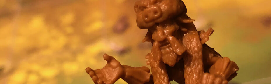 Sachez qu’il ne peut y avoir plus d’un mégalithe sur une case, donc en réalisant le pattern on ne fait que sortir un chamane adverse, mais on ne marque pas de points, parfois (souvent) c’est utile pour au moins ralentir l’adversaire. Mais il y a aussi une mécanique de compensation, car on place le mégalithe là où l’on a banni le chamane adverse, le rendant disponible à l’adversaire. Autrement dit, quand on donne le bâton à l’adversaire… il ne faut pas pleurer quand il s’en sert pour nous donner la bastonnade ! Du coup les parties sont souvent sur le fil, il ne nous est encore jamais arrivé de perdre 3 à 0, l’issue est toujours très serrée.