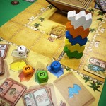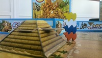 >> C’est le seul moyen pour faire avancer un chameau. On conserve la tuile pyramide devant soi : elle nous rapportera une pièce à la phase de score.