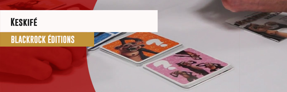 Nous voici sur le stand de Blackrock, où Julien Sentis, auteur de jeux, nous parle de son jeu d’ambiance keskifé ?