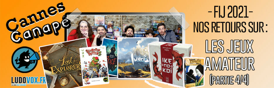 CANNES CANAPÉ · FIJ 2021 · JEUX AMATEUR : Rest in Peace, Lost explorers, Kodachi, Ike no koi, Iwari, Schotten Totten 2