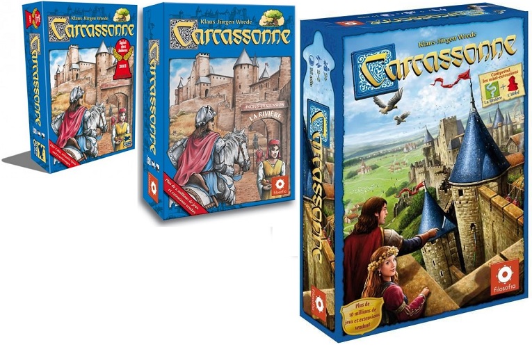 La plupart de ces boîtes sont difficiles à trouver actuellement, et on est en droit d’attendre leur future réédition avec leur nouveau look graphique. Finalement, c’était peut-être le bon moment pour une refonte globale des dessins ? Le débat fera sûrement rage entre anciens et nouveaux adeptes de Carcassonne…