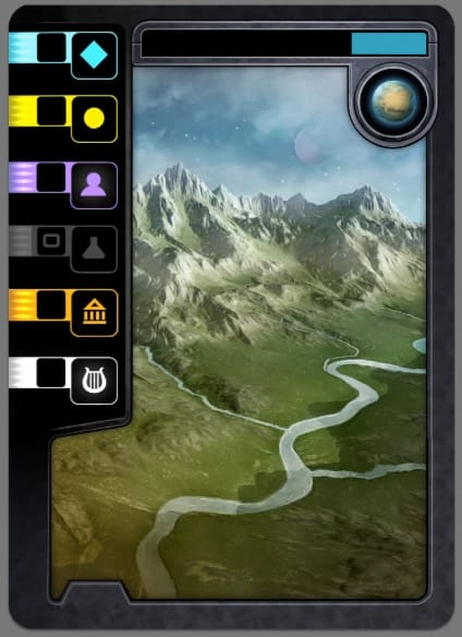 Tout cela se fait avec vos cartes, qui sont multi-usages. Par exemple, pour établir un avant-poste, j’ai besoin d’une carte avec l’icône Population, et trois icônes de plus si je veux établir une colonie. Ce faisant, je prends le jeton de mon plateau et le place sur le système colonisé, mais je vais aussi ajouter une tuile de développement, qui va me donner plus de force dans les combats, des points en plus, plus de cartes en réserve, etc. On retrouvait ce système dans Handful of Stars ou coloniser des systèmes nous donnait plus de possibilités, de la matière de la population, etc.