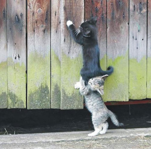 Tous les chats sont attirés par ces poissons appétissants mais ils se demandent comment il pourrait bien faire pour les atteindre. C’est pas simple la vie de chat vous savez. Il leur vient alors l’idée de monter sur le dos des uns et des autres. Aidez-les à construire leur tour de chats !