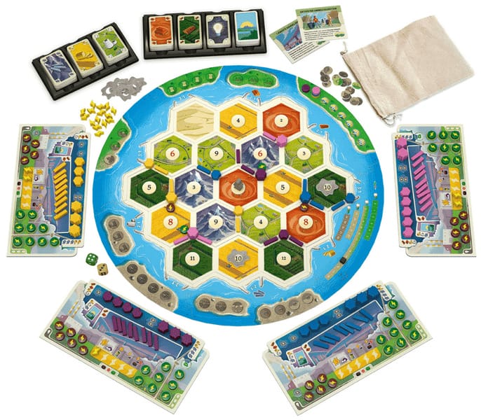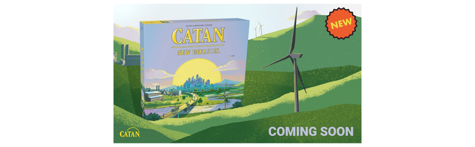 Cette édition, illustrée par Ian O’Toole (On Mars, Kanban EV, The Gallerist…), se base sur l’ADN du traditionnel Catan (la récolte, le commerce et la construction), pour mieux y adjoindre notamment des centrales électriques, des jetons d’énergie et des événements environnementaux, promesses de nouvelles stratégies. « Vous commencerez par utiliser des combustibles fossiles bon marché qui provoquent des événements polluants et interrompent la production de ressources. Mais au fur et à mesure que vous investissez dans les énergies renouvelables, les événements de pollution sont remplacés par des récompenses pour les stratégies durables. Vous surveillerez et négocierez avec les autres joueurs pour réduire la pollution, qui affecte tout le monde. »