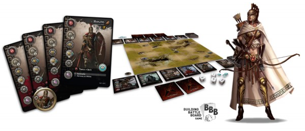 Là où on commence à entrer dans le spécifique, c’est sur la composition des armées : on peut, comme dans la plupart des jeux d’affrontement avec figurines depuis la nuit des temps, composer son armée sur la base d’unités qui coûtent chacune un certain nombre de points. On constitue ainsi de manière assez simple des armées qui sont censées être de forces équivalentes, puisque construites avec le même budget en termes de points. Ce premier point est déjà important en terme de rejouabilité, puisqu’on imagine rapidement qu’on va pouvoir composer des combinaisons intéressantes d’unités, de pouvoirs, etc.. D’un point de vue thématique, chaque joueur prend le rôle d’un commandant d’armée correspondant à une faction qui coïncide fondamentalement à l’une des déités du Panthéon grec : Athéna, Hélios, etc.. pour les gentils, et Achéron, Léthé, etc.. pour les méchants.