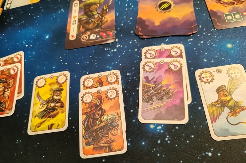Comme dans la version originale, la main peut s’épuiser rapidement. Ici, la reconstitution se fait de deux manières : soit par les cartes reçues en récompense, soit, s’il est impossible de jouer, en défaussant une énergie, s’il en reste. Cette dernière option permet de récupérer quelques cartes, mais au prix de la perte des éléments présents sur l’aéronef. Une fois la rencontre résolue, les récompenses sont distribuées, puis il s’agira de décider si une halte s’impose ou si l’on continue de la même manière.