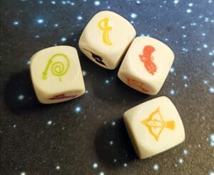 Celestia Duo, à l’instar de la version originale, repose sur une boucle principale simple et largement dépendante du hasard : les joueurs doivent faire correspondre leurs cartes aux symboles des dés Embuscade, en défaussant celles de leur main et en tirant parti des compétences de l’équipage. Cette mécanique aléatoire est fidèlement retranscrite et reflète l’essence de Celestia.