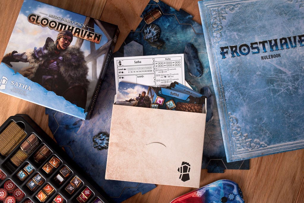 - Satha, Maire de Frosthaven : Survivant d’une attaque dévastatrice, Satha se distingue par un leadership affirmé et une détermination sans faille à défendre la ville. Son expérience en matière de protection en fait un pilier pour n’importe quelle équipe. Pour jouer le scénario de Satha, vous aurez besoin des tuiles provenant de Frosthaven.