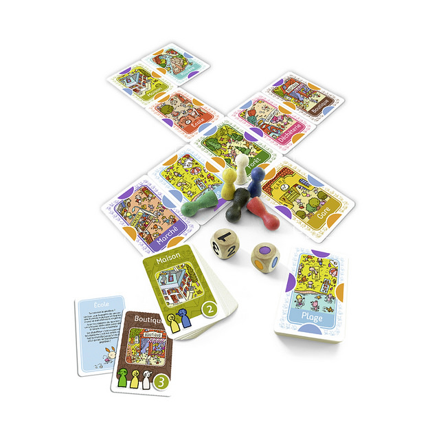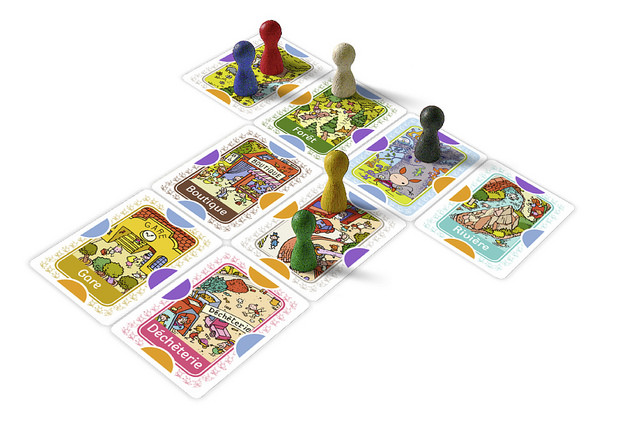 « Vous avez des cartes Lieu (rivière, maison, plage, forêt, déchetterie, boutique…) qui ont des bords de 3 couleurs différentes.