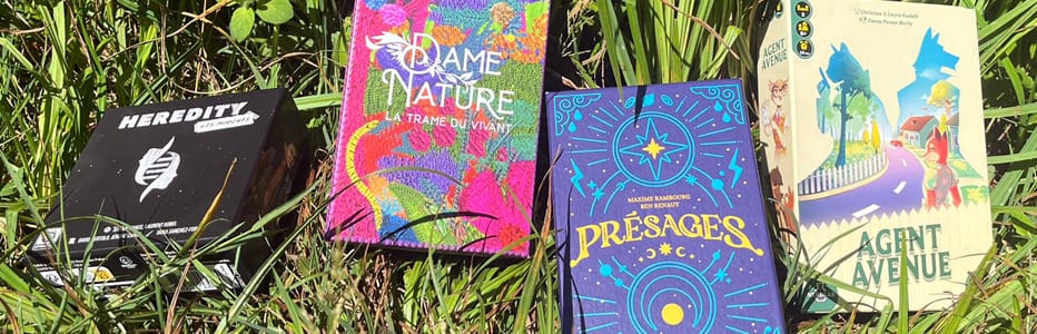 Agent Avenue a toujours bonne presse à la maison et permet de jouer en un contre un ou en deux contre deux. On va aussi sortir quelques jeux de plis aussi avec l’incroyable 7 Yokai, le surprenant King Tricktakers ou encore Présages. J’aimerais aussi “poncer” Niwashi que j’adore. S’il y a un peu de place pour du gros jeu qui tâche, on continuera à éprouver Stupor Mundi ou El Burro. On devrait aussi terminer la campagne de Heredity et attaquer l’extension des Mioches.