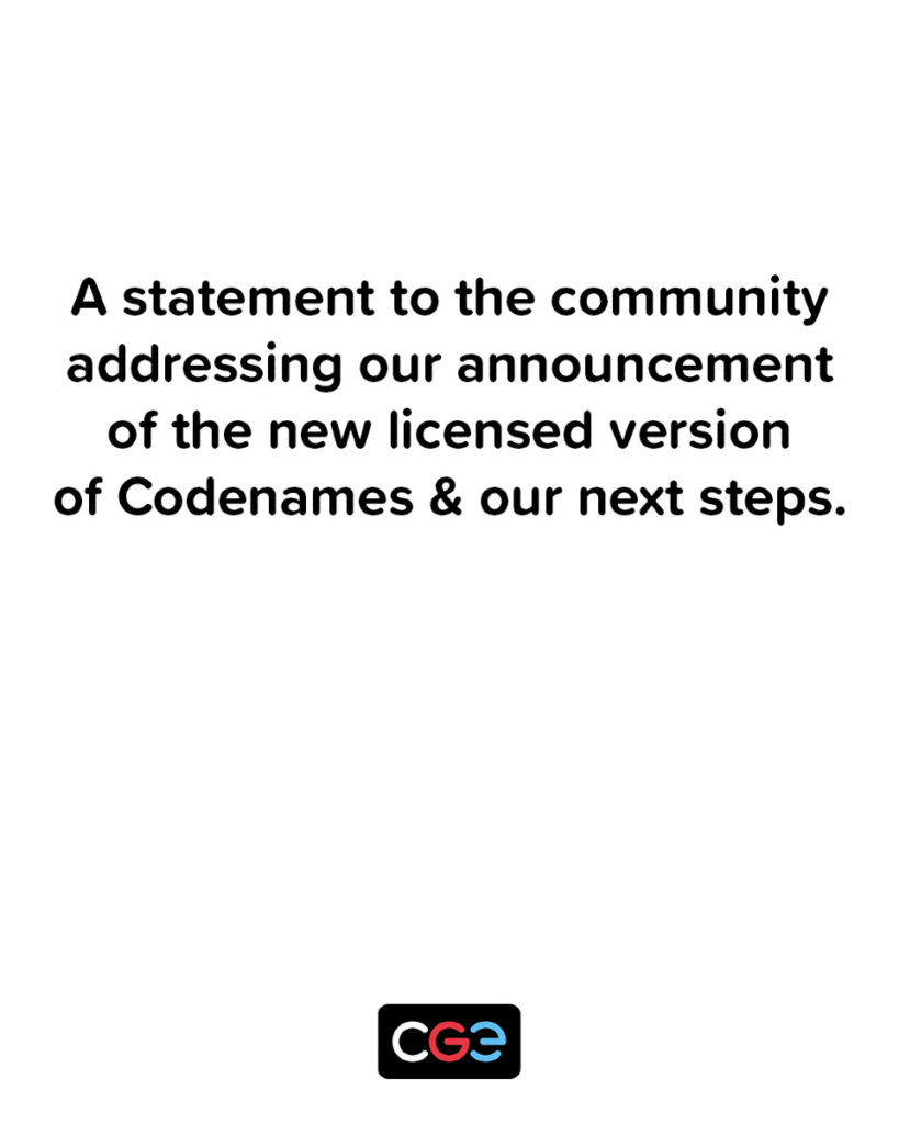 « Une déclaration à la communauté concernant l’annonce de la nouvelle version sous licence de Codenames et nos prochaines étapes.