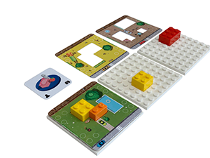 Mais ce n’est pas si simple… Pour chaque parcelle complétée, vous devez sélectionner une carte événement et suivre les instructions – vous devrez peut-être échanger un bloc de construction avec un autre joueur (livraison défectueuse), retirer un bloc de construction de votre parcelle (ouragan), ou donner un bloc supplémentaire à tous les joueurs (subvention supplémentaire).