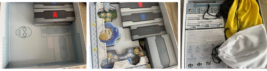 Dans mon intro j’ai insisté sur les 38 pages, le glossaire, le livret récapitulatif par joueur, mais là encore on est dans la perfection, tout est présent, et si (chose qui arrivera dans vos premières parties) une question survient en jeu, un coup d’œil dans le glossaire vous dira à quelle page de la règle vous trouverez l’info. Je crois que Civolution propose un des meilleurs livrets de règle que j’ai jamais vus.