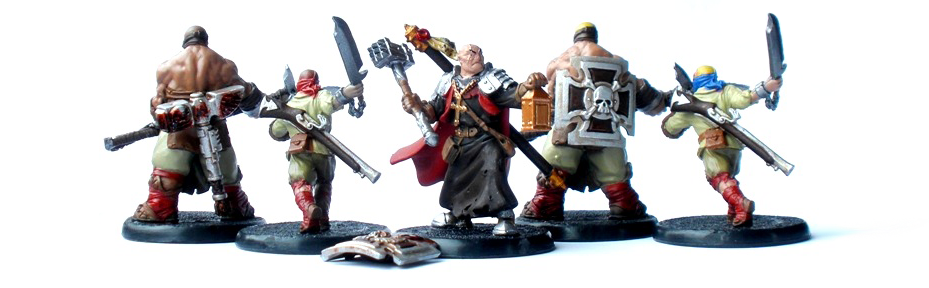 Le jeu de base comporte une dizaine de scénarios avec des équipes déjà définies, par exemple un Frère avec un sort de soin et 2 brutes dont une armée d’un bouclier.