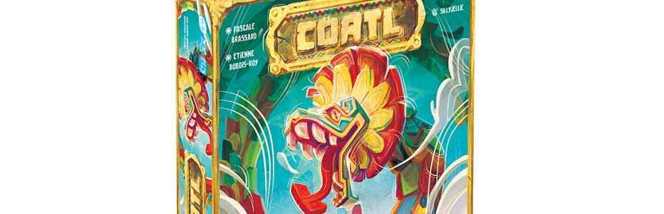 Coatl est le prochain jeu de l’éditeur Synapses Games (itw) qui s’est illustré avec Crazy Tower (news) et Incubation. Ce nouveau titre à venir est une création de Pascale Brassard et Etienne Dubois-Roy, pour qui il s’agit du premier jeu édité. Silly Jellie donne vie et couleurs à ces serpents à plumes (le coatl du titre). Si vous avez bonne mémoire, vous savez déjà que l’ami TheGoodTheBadAndTheMeeple nous en avait déjà parlé dans ce reportage tandis que le jeu n’était encore qu’un prototype !