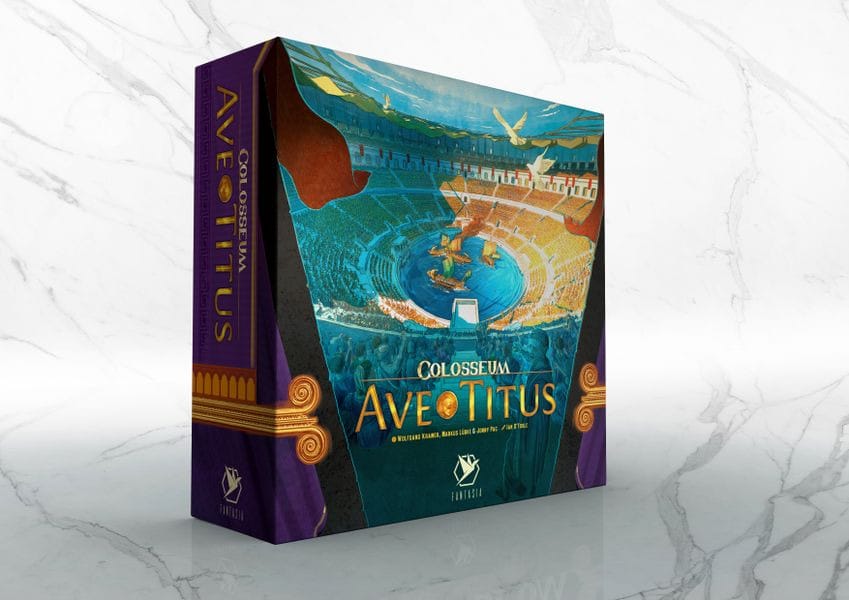 Colosseum est un “vieux” jeu datant de 2007, signé Wolfgang Kramer & Markus Lübke, et paru chez Days of Wonder (il avait été sélectionné pour un certain nombre de Golden Geek sans l’emporter à l’époque). Le voilà qui prépare son grand retour, sous deux formes distinctes via l’éditeur grec Fantasia Games. Nous aurons ainsi un premier Colosseum: The Grand Spectacle (de Wolfgang Kramer & Markus Lübke, illustré par Mihajlo Dimitrievski & Ian O’Toole) soit une version Deluxe avec remaniement de règles, puis un Colosseum: Ave Titus (Wolfgang Kramer & Markus Lübke et Jonny Pac, illustré par Ian O’Toole), une autre itération autonome, différente mécaniquement, prévue pour plus tard. Dans Colosseum vous tentez de produire de grands spectacles épiques pour attirer un maximum de monde et devenir l’impresario chouchou de l’empereur.