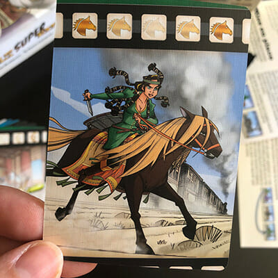 Il existe deux extensions à ajouter dans le deck pour compliquer un peu la tâche : une carte réflexe qui vous permet quand vous prenez une balle de répliquer dans un réflexe incroyable ; et le cheval, grâce à lui si vous tombez vous vous raccrochez à votre monture et pouvez réintégrer le train.