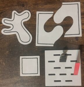 Plus important, les contraintes : des petites difficultés qui vont se rajouter durant la partie. On aura parfois des cases un peu bizarres (tordues, plus petites etc…) mais aussi des contraintes plus importantes : faire deviner un détail, ou la case de la page d’en face ou même… aucune case. Clairement cette mécanique est nécessaire car elle amène une petite difficulté bien agréable. Néanmoins, cette mécanique a ses limites : au bout du quatrième tour, on aura forcément une contrainte qui nous sera attribuée, donc par élimination on trouvera plus facilement qui a quoi. Pour celles qui fonctionnent sur l’incertitude, c’est assez décevant du coup. Il doit y avoir un moyen de faire une règle maison pour contrebalancer cela. Petite déception aussi sur la case « 3D » qui est une super idée, mais dans laquelle nos éléments ne tiennent pas, ce qui génère plus d’agacement que de fun.