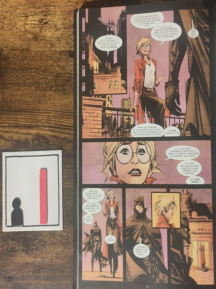 Mais à la limite… on s’en fout un peu, non ? Parce le cœur du jeu ce n’est pas ça. pour moi, ce qui me plaît dans Comix trip, ce n’est pas le jeu, c’est la BD que l’on va utiliser. Je suis un grand fan de lecture, de BD en particulier (et d’un certain héros en plus particulier), loisir très solitaire. Or ici, on va pouvoir partager, échanger et faire découvrir les BD de notre bibliothèque, même à des gens qui ne les liront peut-être pas ; mais ce n’est pas grave, c’est aussi une façon de découvrir les autres joueurs. Dis-moi ce que tu lis je te dirais qui tu es ? Cet objectif est atteint, et cela tombe bien, c’est ce que j’attendais.