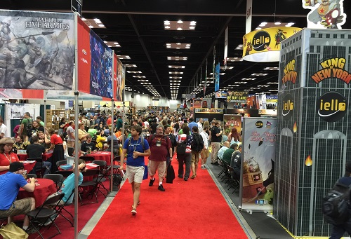 Et là, je ne parle que du centre de congrès : à l’extérieur, toutes les salles de conférences des hôtels 5* étaient réservées pour… des tables de JdR. En fait, tout le centre ville d’Indianapolis est saturé de geeks pendant les quatre jours du plus grand rassemblement ludique nord-américain. Et, comme me l’a dit une orga, « la Gencon, c’est très humain. On est loin de la Comic-Con, beaucoup plus orientée stars. Ici, l’ambiance est à la rencontre et à la déconnade. On s’en fout de faire signer des trucs. » Elle avait un peu raison, la bougresse. Il n’en reste pas moins ce côté mercantile un peu flippant. Sur le jeudi, la file d’attente pour le stand FFG faisait 700 mètres, celle de Cool Mini or Not, quelque chose comme 200 mètres, le stand de Flying Frog Productions était encerclé par des gens qui voulaient leur boîte de Caverns of Cynder. Bref, c’est un peu fou.