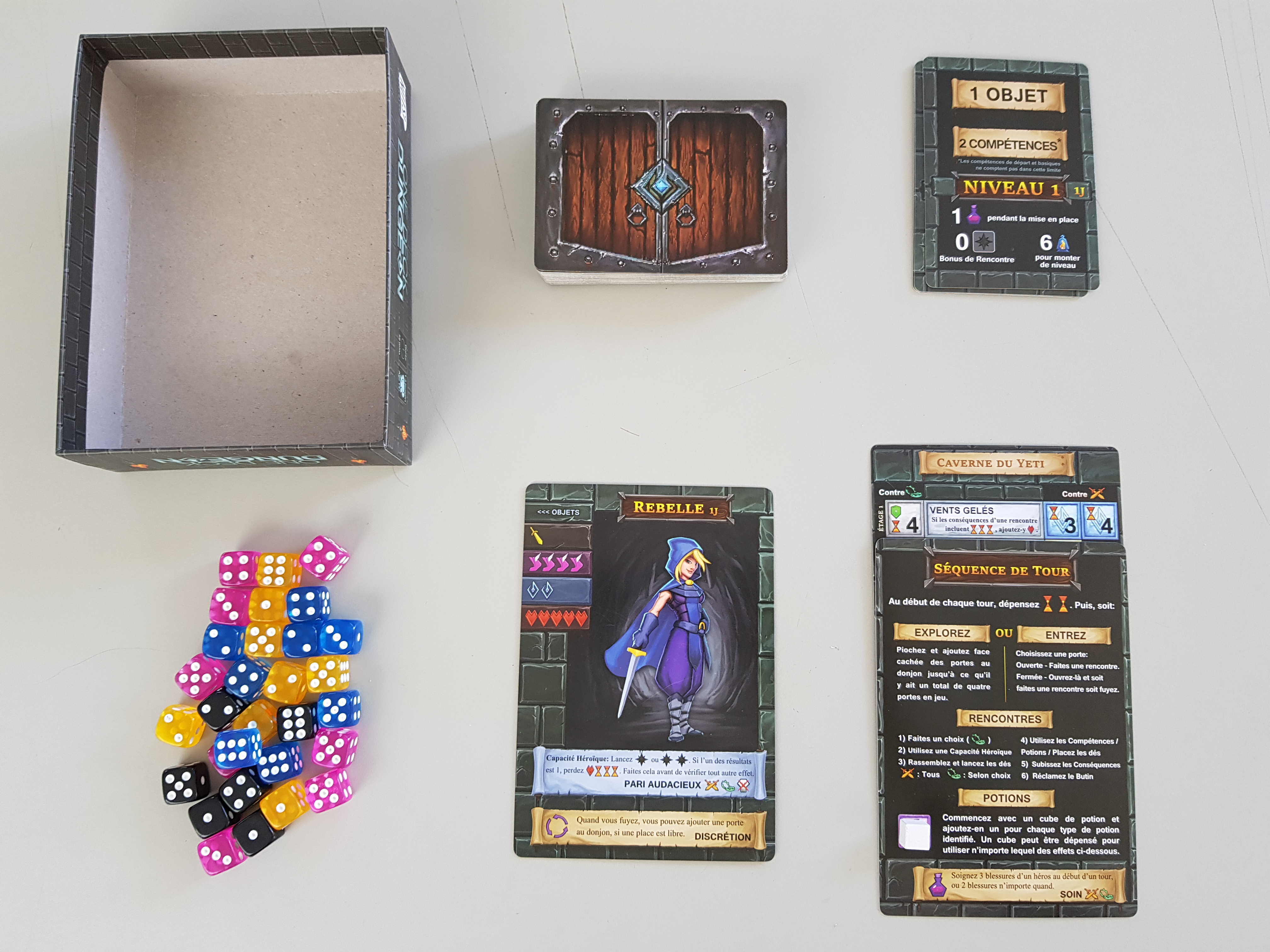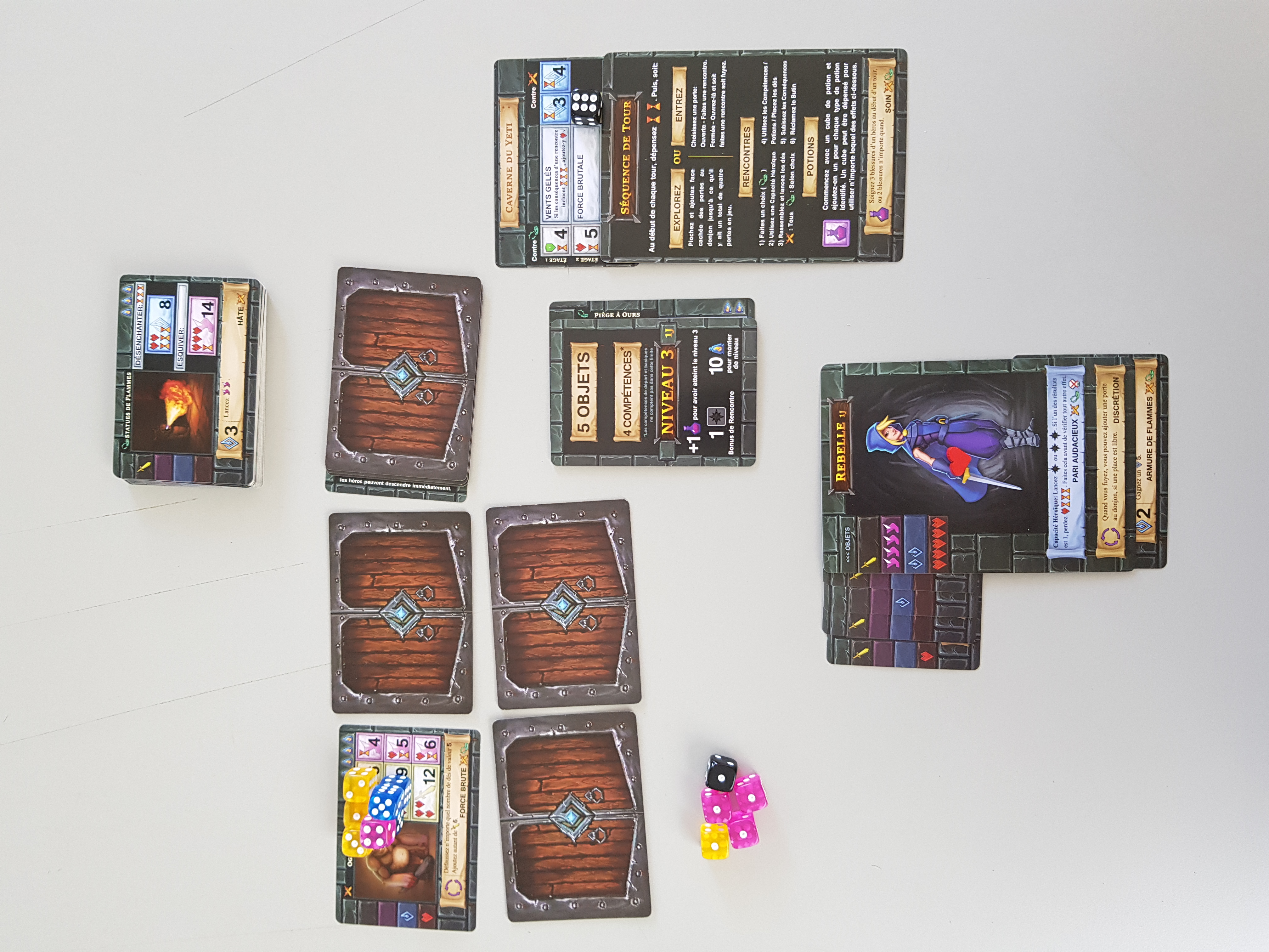 Je décide de prendre plus d’objet que de compétence mais ensuite mes mauvais lancers de dé ne sont plus modifiables. Bref, je n’ai pas forcément fait les bons choix mais le derniers lancers avec 4 dès à 1, ça fait mal surtout sur un gros monstre.