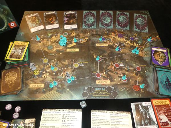 Notre première partie en mode normal se déroule plutôt bien mais on perd de justesse en épuisant le paquet de cartes sans avoir fermé les 4 portails. Je jouais l’occultiste dont le pouvoir est plutôt faible (déplacer des cultises)