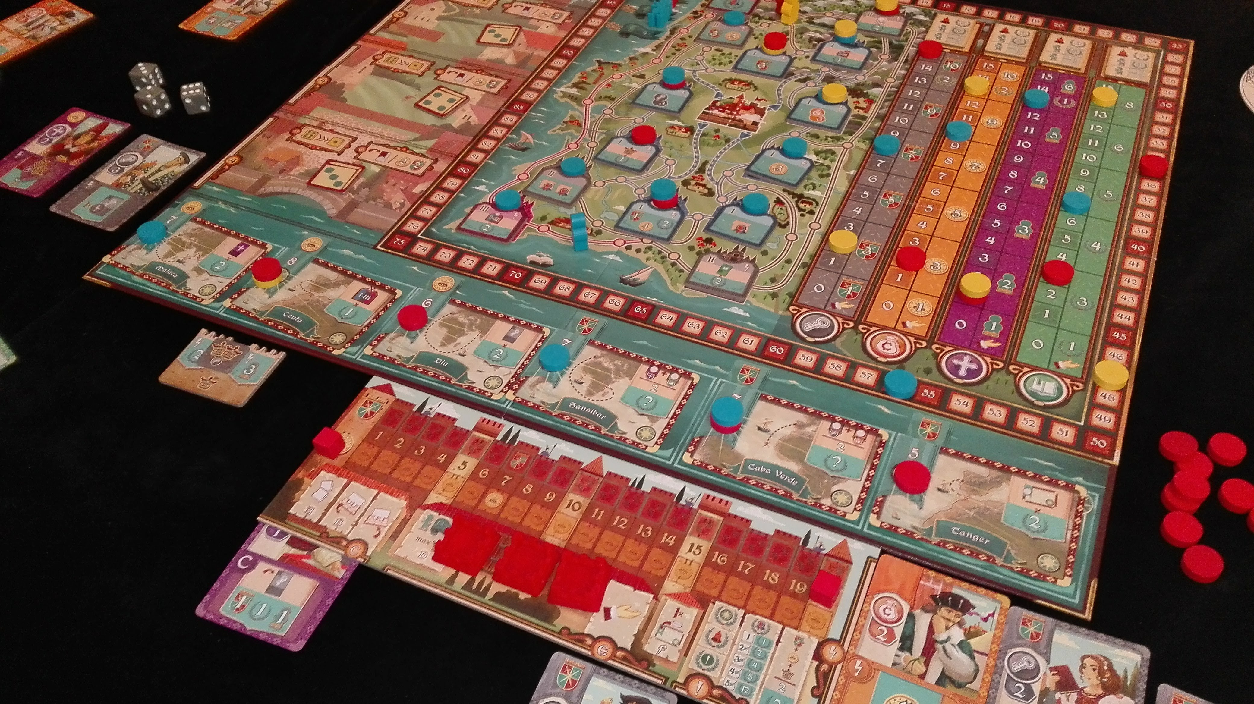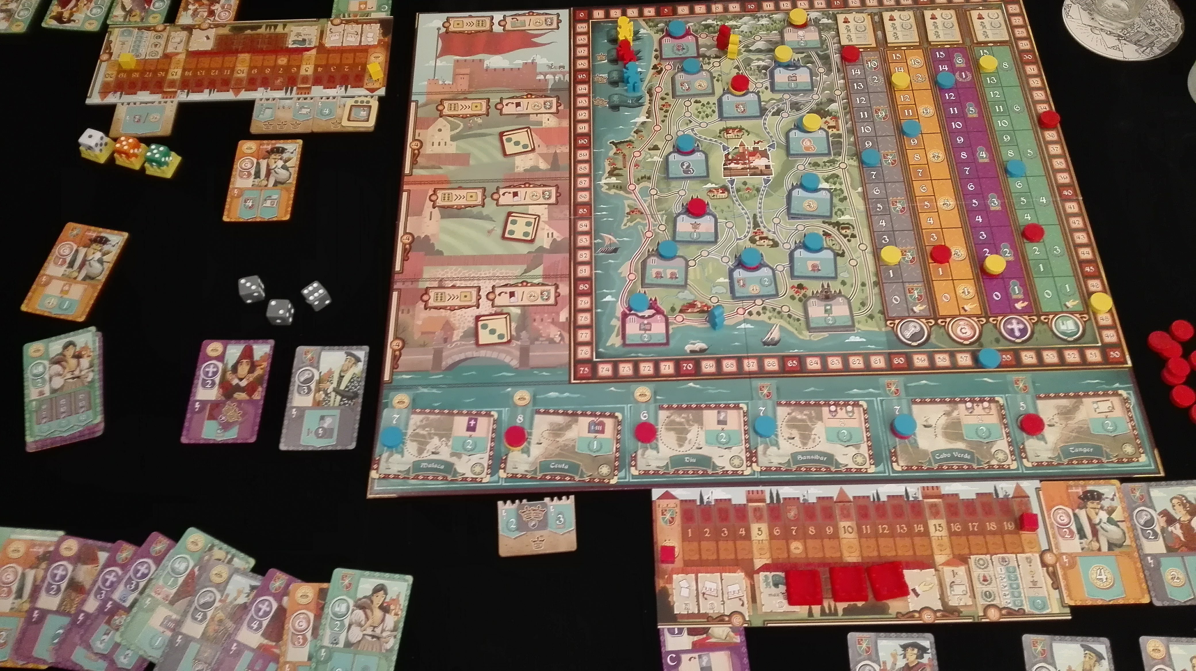 Un bon goût de reviens-y et le renouvelement semble au rendez-vous avec l’apparition des cartes, les dés et le placement aléatoire des tuiles bonus sur les chemins du Portugal qui doivent clairement guider sa stratégie car certaines sont bien plus puissantes que d’autres !