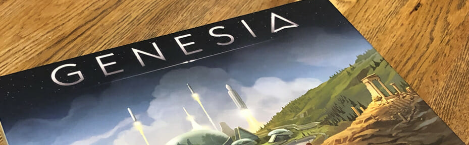 Présenté comme un jeu de civilisation, il mélange mécanismes de draft et de contrôle de territoires : avec quelques cartes triées sur le volet, les joueurs devront déployer judicieusement leurs clans et construire leurs cités sur des points stratégiques afin de s’étendre par delà leurs continents et ravir les meilleures Régions sous contrôle adverse, le tout en 3 âges. On pense forcément à 7 Wonders (thème civilisationnel avec draft en trois âges), ou Bunny Kingdom (prise de territoire par le draft), mais Genesia parvient à offrir une expérience qui se démarque de ses aïeux.