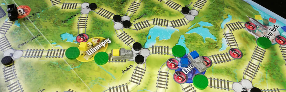 Le plateau Amérique du Nord apporte légèrement plus de variété, car tout en conservant leur lieu de départ aléatoire sur le plateau, les trains devront livrer leurs marchandises non plus vers une mais vers deux villes, en quantités égales. Pour gérer la bonne répartition des marchandises, il faudra donc jouer habilement des aiguillages et des feux verts (les jetons de ces derniers étant en quantité limitée), pour que les trains puissent circuler à tour de rôle sur les mêmes voies sans se bloquer ni se heurter.